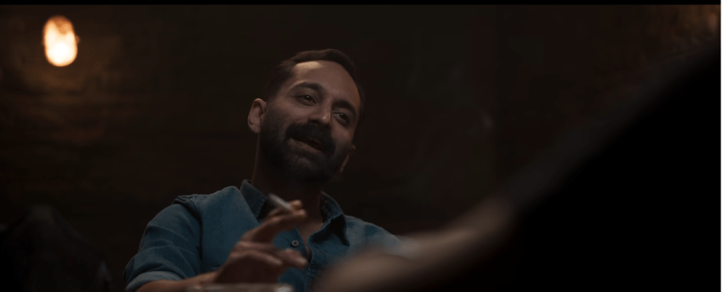 Fahadh’s characters’ journey here is akin to Kamal’s from the 1986 version of Vikram — Undercover cop, going on investigation, has a girlfriend / wife who doesn’t have any idea about his work and becomes collateral damage. The investigation scenes are terrific.