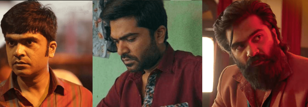 Well, this shouldn’t be surprising or one of a case when it comes to acting — it is not spectacularly new when we watch actors from Hollywood who can be both a larger-than-life star in one film and an almost invisible one in their next film. But sadly, we don’t get such a flip with mainstream “stars” in our cinema. Simbu’s body language, the way he walks, he dances everything was superb — as an audience, I could carry the memory of Muthu being stuck by so many thorns in the first scene, throughout. He was so convincing and delightful to observe in every phase of Muthu. Beautifully aligned with the writing of that character, watch out for the scene where he is made to put a gun on the man’s chest whom he is working for.