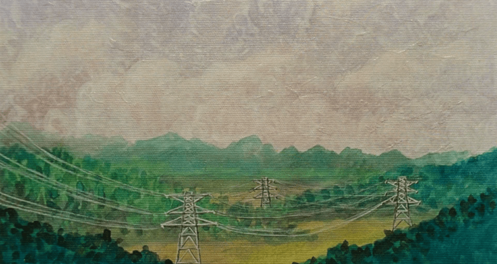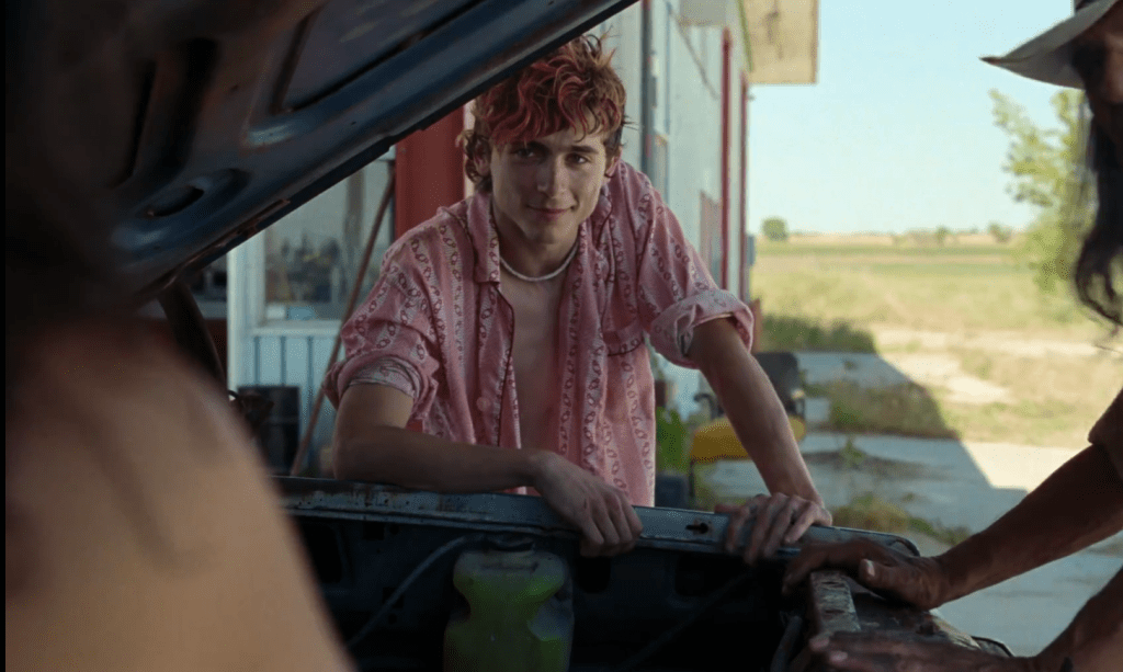Maren says, I don’t know whether to cry, or scream, or laugh, or what. and this pretty much sums my experience of Bones And All. The experience is like witnessing a doped version of Luca Guadagnino’s Call Me By Your Name. Imagine Micheal Stuhlbarg uttering that beautiful monologue from Call Me… after getting stoned. The way the eerieness blends with the gentleness in the movie is like the pairing of chromosomes during synapsis. And the music aids so much in this process. And of course, the visuals are great as always with Luca’s works. It again interestingly integrates a raw and realistic tone like what you see in a movie like A Florida Project, or this year’s aftersun for example with a poetic and cinematic tone. I think the way a Luca Guadagnino movie opens is one of the beautiful things out there in today’s cinema. We have a set of lovely canvases with power lines painted on them at the start of Bones and All, which sets up the stage for the initial scenes.